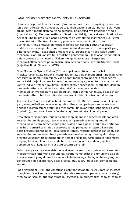 Doc Latar Belakang Patient Safety Infeksi Nonsokomial Suci Kurniawati Academia Edu